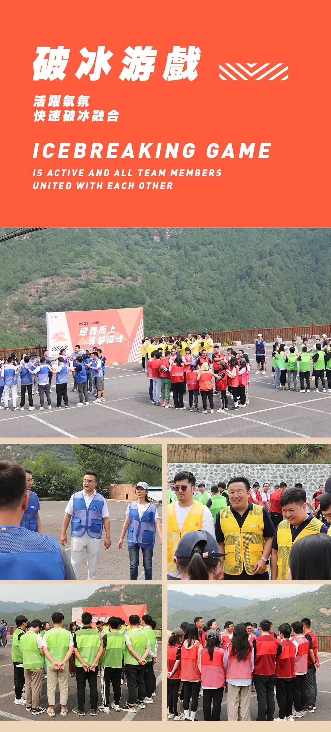 拓展活動(dòng)開營(yíng)儀式上,江河設(shè)計(jì)JHD總裁丁春亞表示,公司高度重視企業(yè)文化建設(shè),讓全體員工找到工作的樂趣和人生的價(jià)值,始終是企業(yè)堅(jiān)持的愿景。通過(guò)此次戶外拓展活動(dòng)提升員工工作歸屬感和幸福感,凝聚團(tuán)隊(duì)共識(shí)。