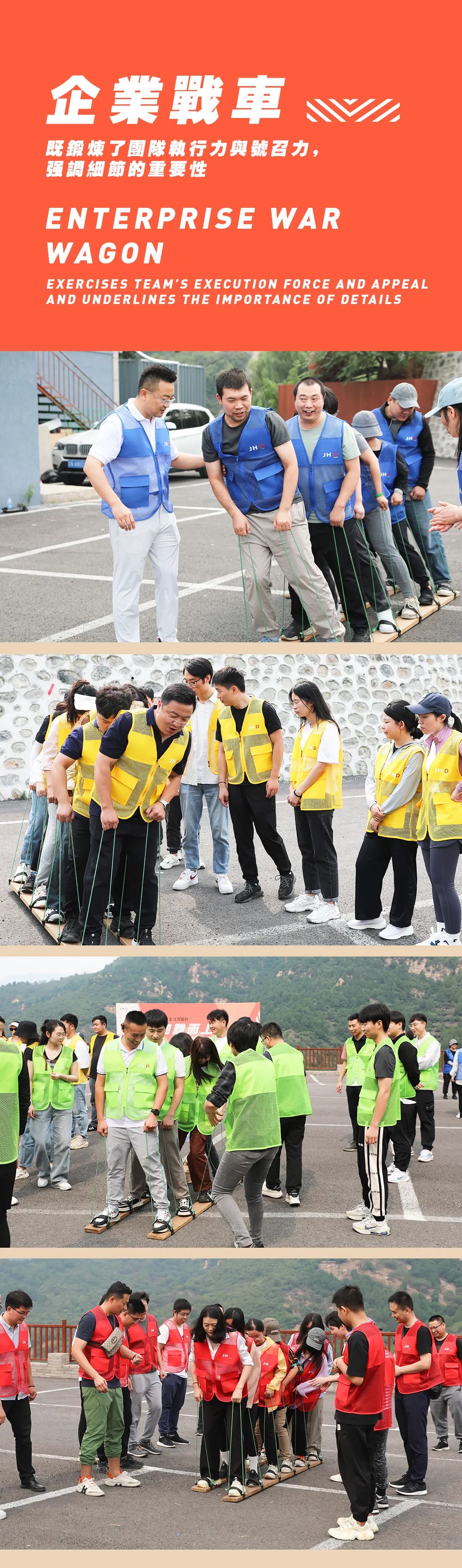對(duì)于參與人員,江河設(shè)計(jì)JHD總裁丁春亞提出明確的要求。一要員工需挖掘自身潛能,增強(qiáng)自信心,克服內(nèi)心的惰性,磨練克服困難的毅力和勇氣,以提升個(gè)人綜合素質(zhì)為目標(biāo);二要提高團(tuán)隊(duì)意識(shí),加強(qiáng)團(tuán)隊(duì)協(xié)作,發(fā)揚(yáng)敢于擔(dān)當(dāng)、團(tuán)結(jié)協(xié)作、勇于拼搏的精神,積極完成各項(xiàng)任務(wù);三要在思想上高度重視,堅(jiān)決聽從命令,服從管理,養(yǎng)成令行禁止、步調(diào)一致的作風(fēng)。