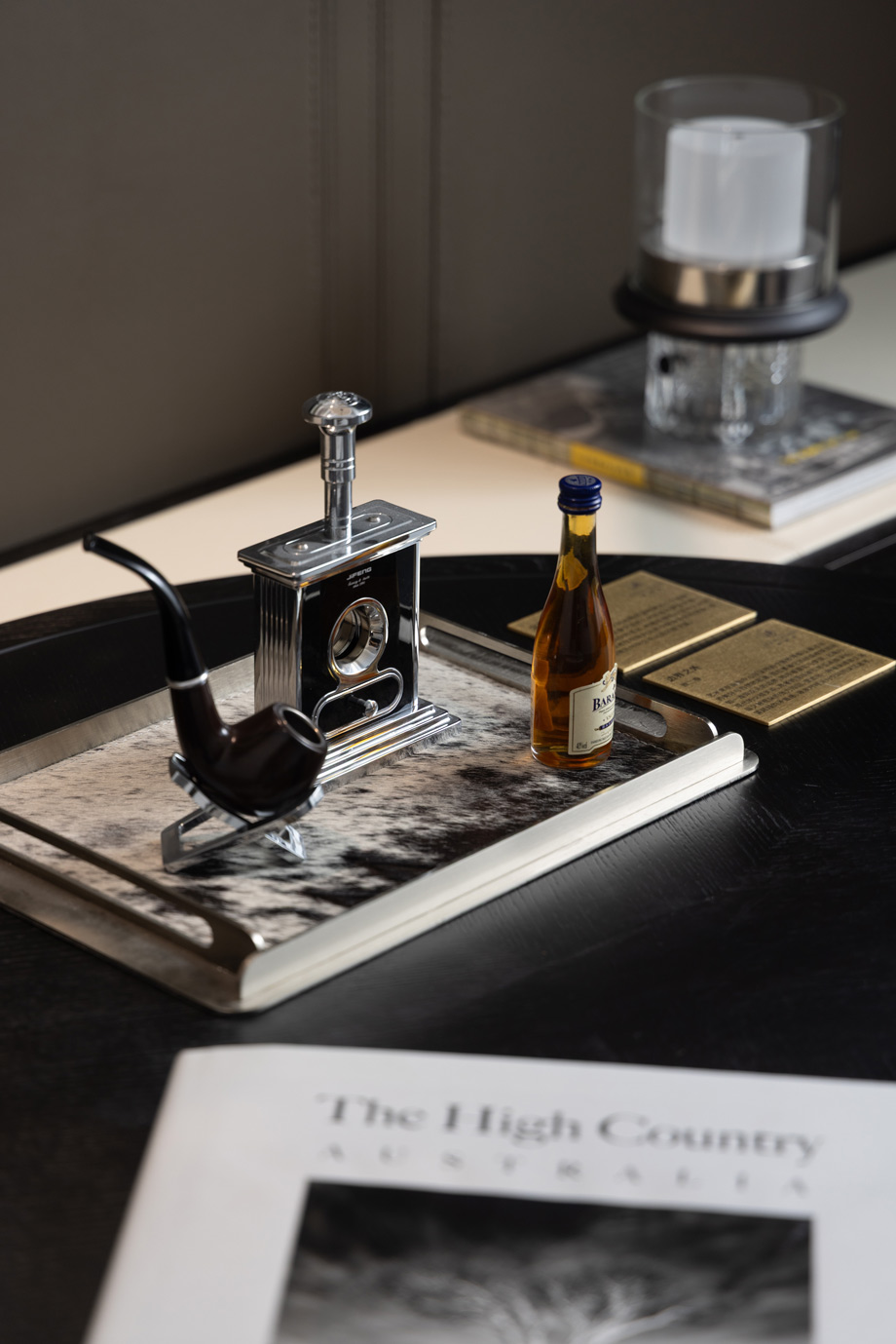 空間上通過(guò)細(xì)膩的材質(zhì)質(zhì)感和色彩上的對(duì)比,結(jié)合不同的施工工藝,金屬與皮革不同材質(zhì)的拼接與碰撞,暗藏宋代極簡(jiǎn)美學(xué)的克制與精致,每一處細(xì)節(jié)元素在潛意識(shí)里貫穿始終,提升空間品質(zhì)感。