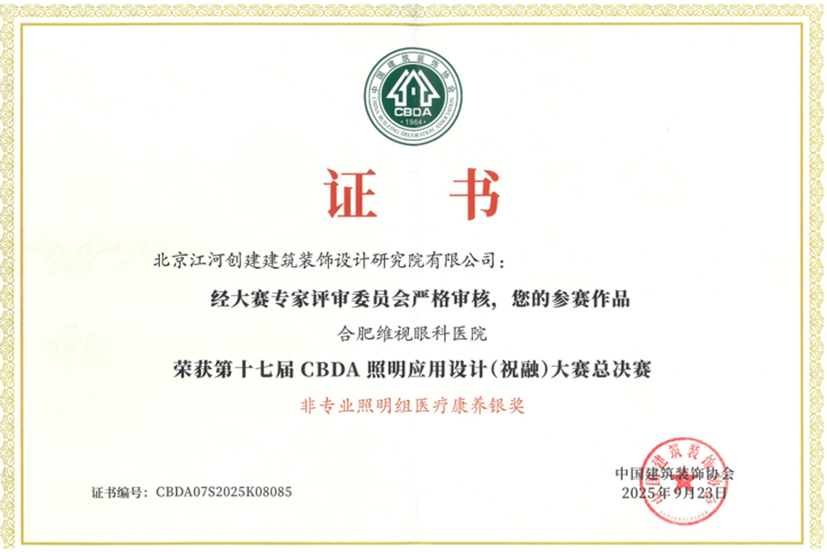以“光合萬象”為主題的的第十七屆CBDA照明應用設計(祝融)大賽總決賽暨光合萬象照明設計大會在武漢順利落下帷幕,大賽歷經(jīng)多場分站賽選拔,江河設計JHD作品合肥維視眼科醫(yī)院榮獲第十七屆CBDA照明應用設計(祝融)大賽總決賽非專業(yè)照明組醫(yī)療康養(yǎng)銀獎
