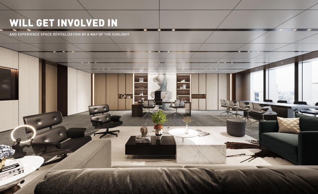 Walking through office lobby, one could appreciate the integration between the silhouette of trees with the brand philosophy. These functions are distributed by means of heterogeneity in the entire space and different design principles are included in the life system. Every individual, after entering the working space, will get involved in and experience space revitalization by a way of the sunlight.