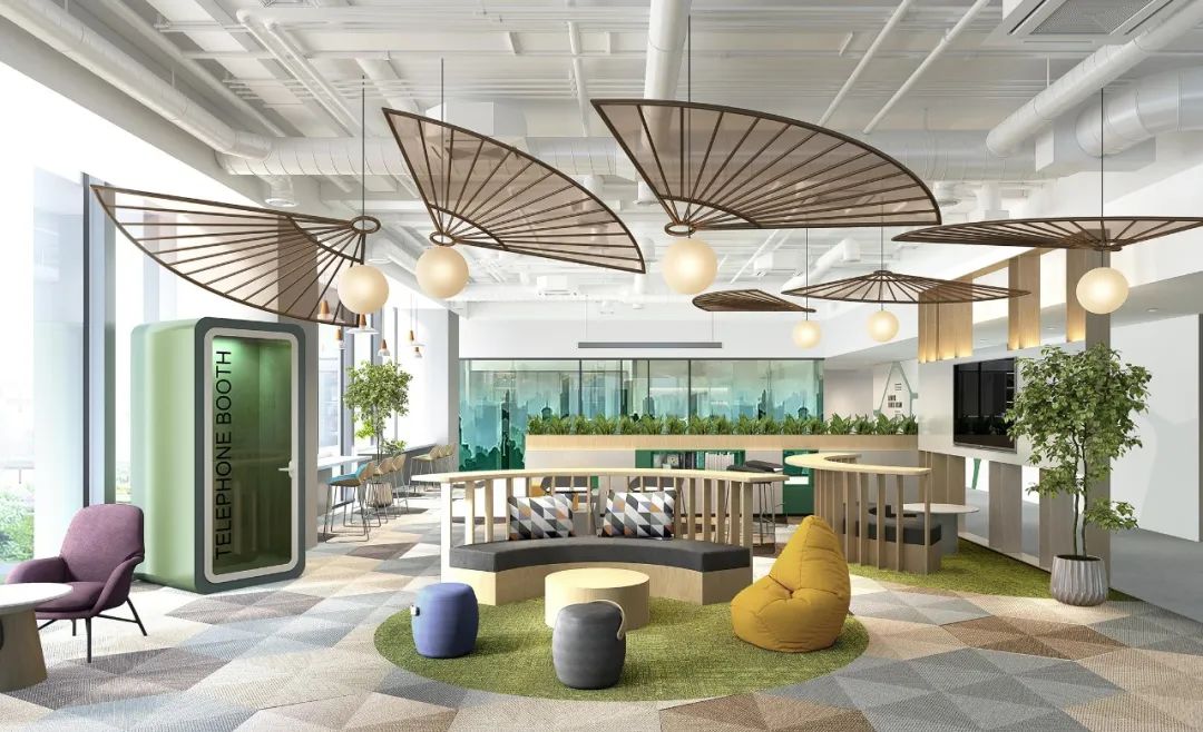 Space is growing but nature will not. Nature will be integrated into urban texture more harmoniously.Bright and fresh aesthetic can be found everywhere once observed visually. The concept of permeability is widely applied in design, invisible but indispensable, just like the photosynthesis in which sunlight penetrates cell walls. In space, to interpretate the interaction between individuals and the environment, JHD blends the philosophy of life, health and green office into the design delicately, making the shadow of the game lither and nimbler.