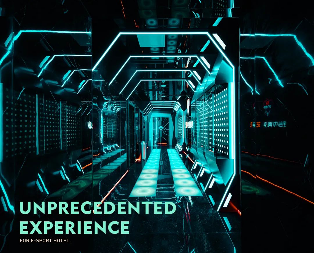 Designed with unique method and following the idea of fashion and virtual world, the project brings a surreal space for e-sports fans, who could chase their dreams, meet challenges and share their passions and interests with other like-minded people here. E-sport hotel not only serves as a hotel but also embodies a brand new lifestyle, guiding the youths to explore the virtual world.